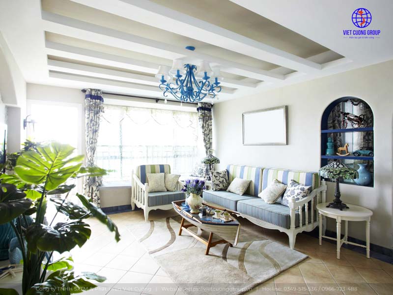 Phong cách thiết kế nội thất Địa Trung Hải nổi bật với không gian mở, màu xanh biển, trắng và các chất liệu thô mộc. Tạo nên cảm giác mát mẻ và gần gũi với thiên nhiên, phong cách này phù hợp cho cả các căn hộ và nhà biệt thự ven biển.